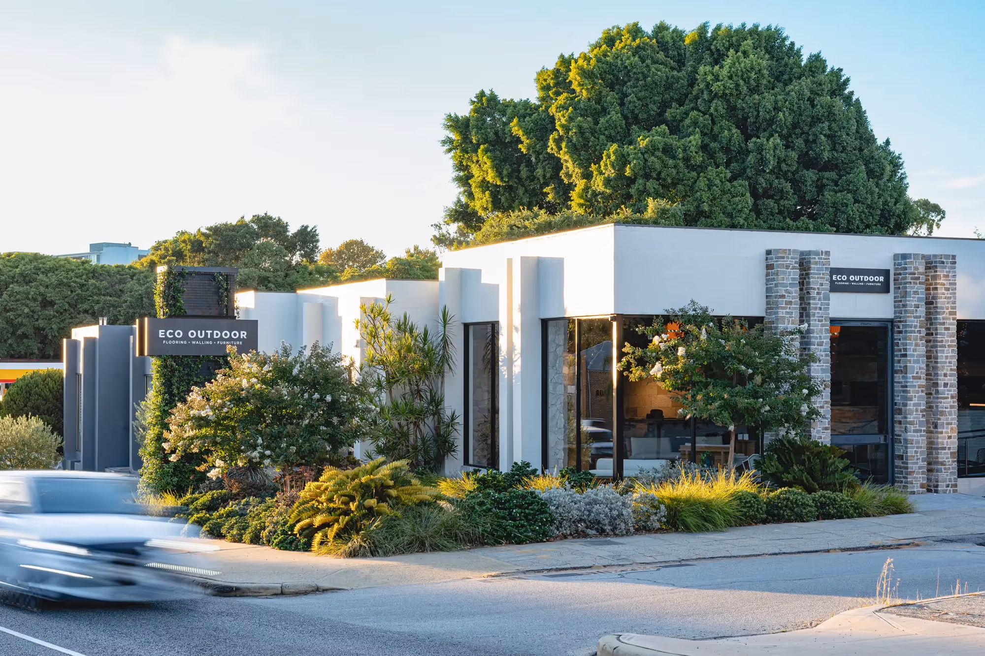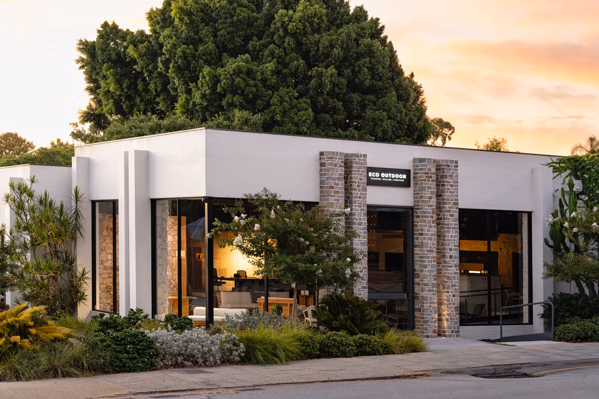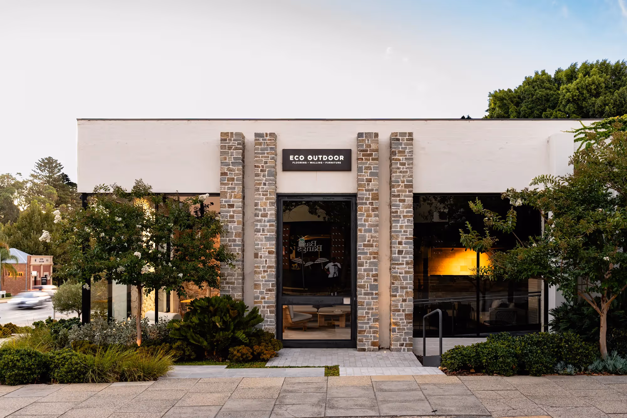 Supported by Eco Outdoor's curated architectural surfaces and natural stone materials, the space balances utility with creative ambition. This project highlights the power of collaboration, uniting craftsmanship, design, and elegance in a seamless commercial landscape.