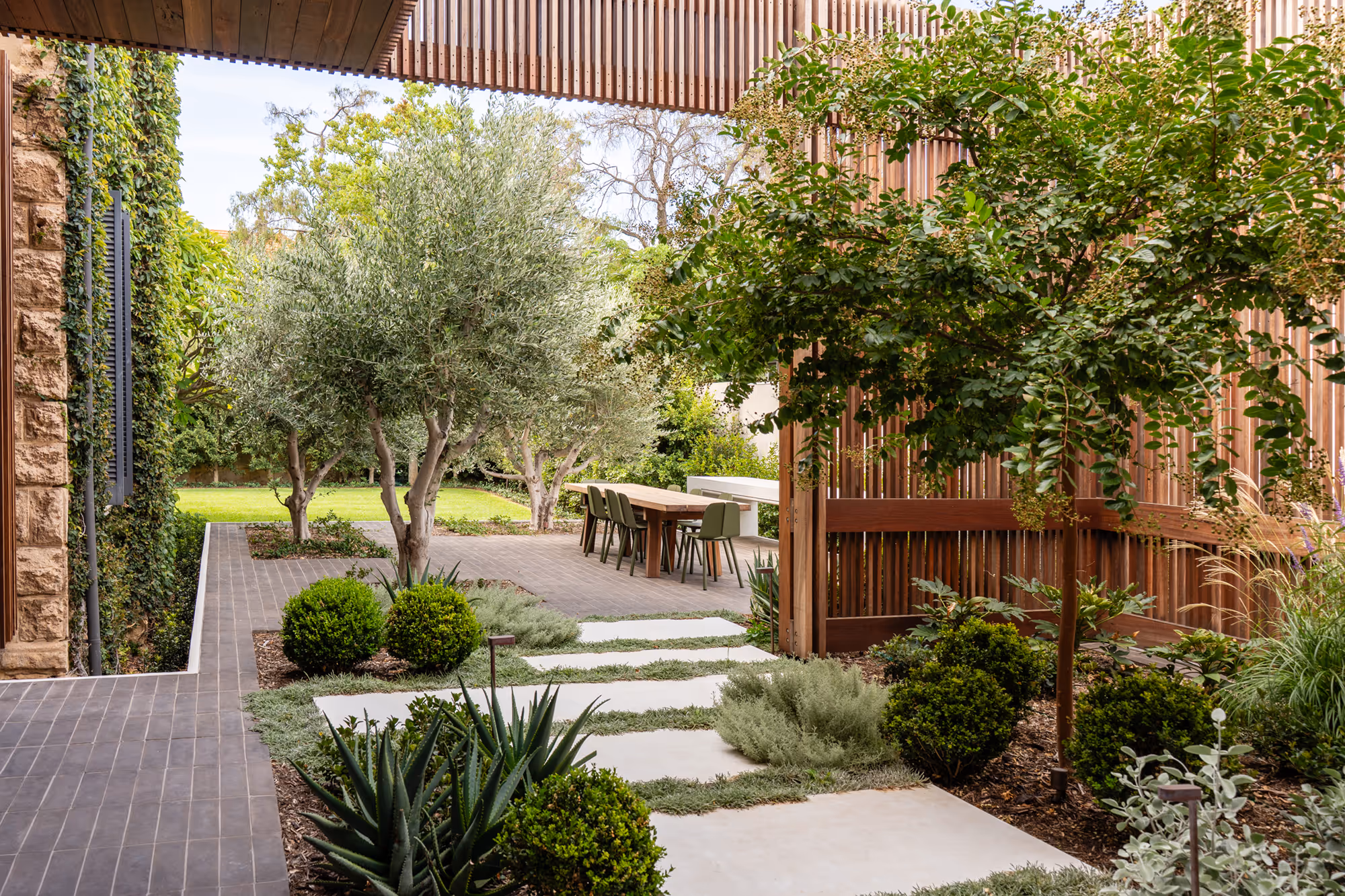 By reducing built form in the garden and allowing the plants to take centre stage, the property has been returned to the landscape. The result is a timeless space that feels both grounded and refined, where every element supports the heritage character of the home while offering a lush, inviting retreat.